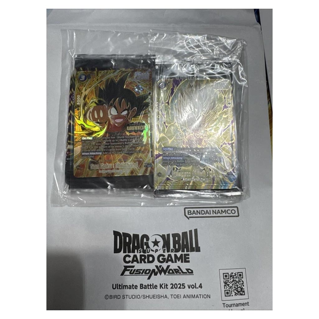Regular Price $ 1.00Deprisa! Solamente hay0unidades disponibles en stock!Set: Organized Play Fecha de Lanzamiento: 2025 Octubre 03 Dragon Ball Super Card Game: Fusion World Ultimate Battle Kit 2025 Vol. 4